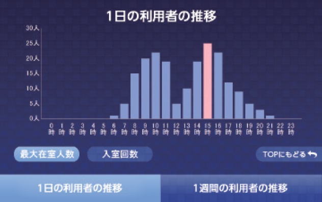 1日・1週間の利用者数の推移をタッチパネルで簡単に確認できます。