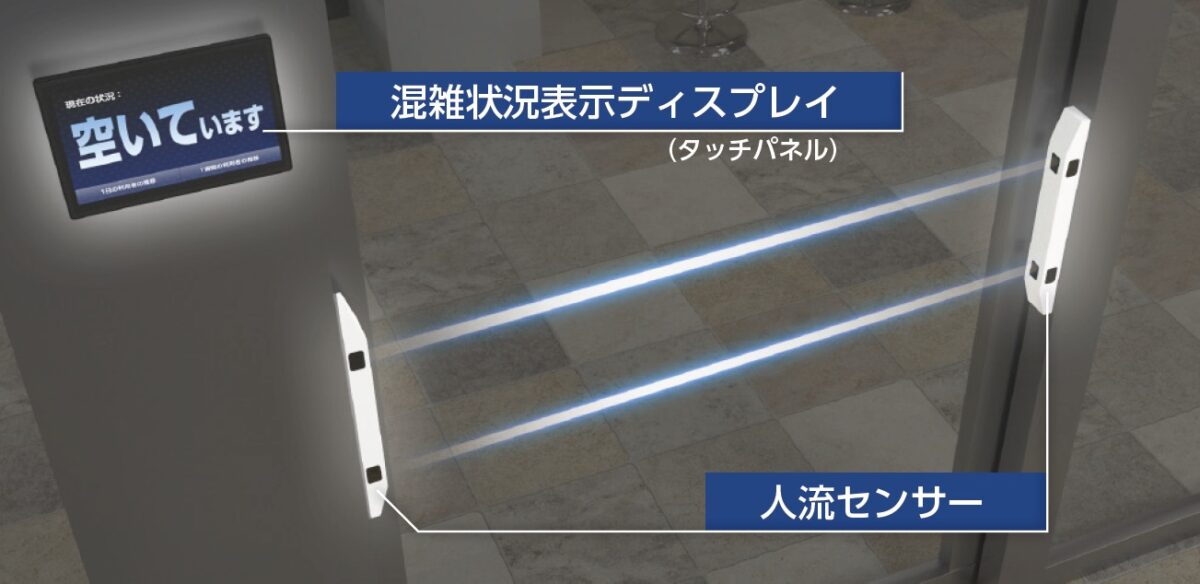混雑状況が、一目でわかる人流センサーと混在状況表示ディスプレイがひとつになったパッケージ製品です。